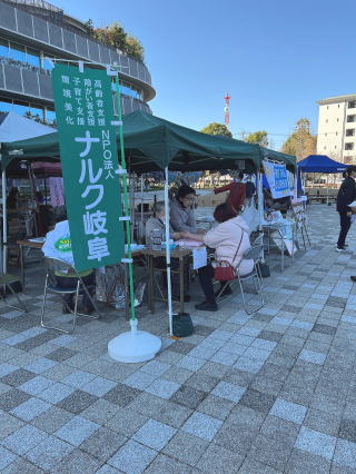 ナルク岐阜は、ハンドマッサージで活動をPRしました。